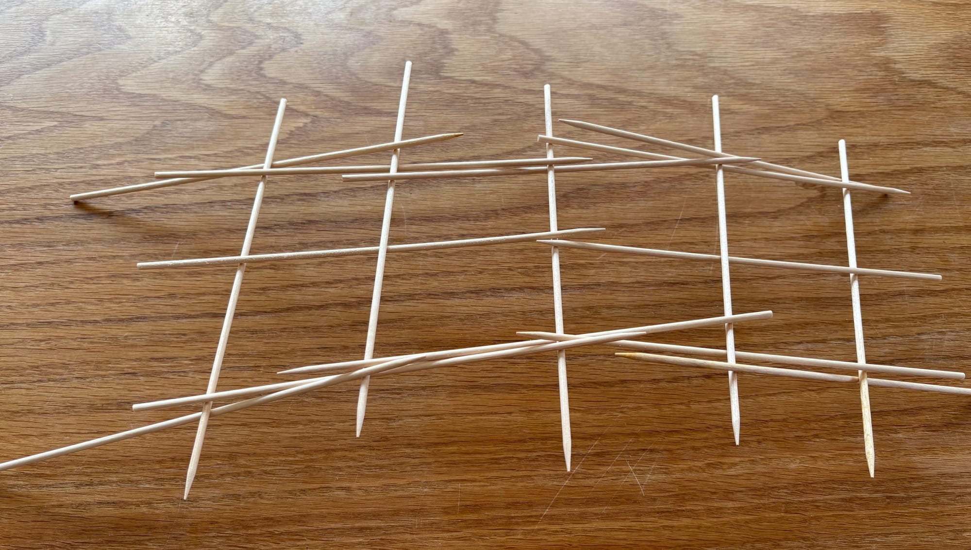 Kennst du die? Eine Holzkonstruktion, die sich nur durch Balance und geschicktes Ineinanderhaken trägt – ohne Nägel, ohne Schrauben.